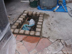 まずは門扉左側の土間を一部解体します。