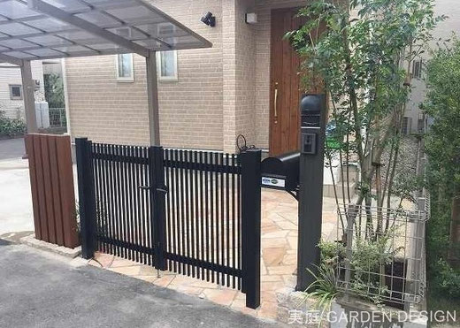 門扉に並ぶようにアルミのスリットフェンスを設置。