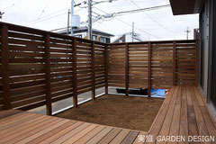 ウッドデッキとウッドフェンスの完成です。各部屋から直接出られて、土の部分も楽しめるお庭になりました。