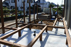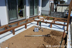 ウッドデッキを設置する部分には、予めコンクリートで舗装しました。